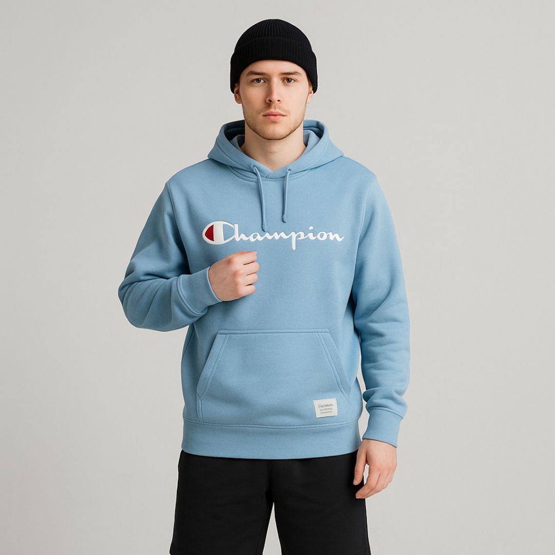 Buzo Capotero Champion Azul Cielo – Estilo Urbano con Sello Auténtico